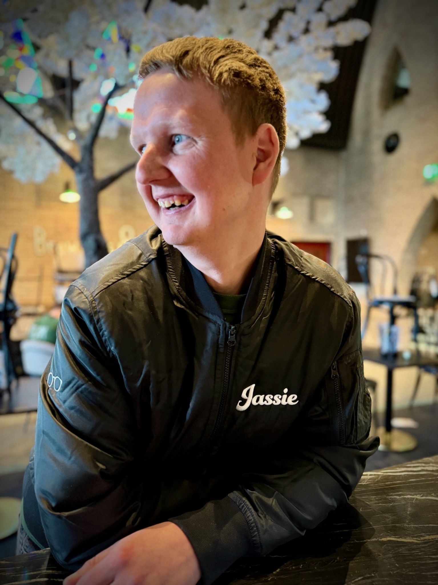 Onze Jasper had zelf een bomberjack die we na zijn overlijden natuurlijk zelf graag wilde dragen. En om duidelijk te maken dat het zijn jas was ontstond het idee om Jassie op zijn Jassie te printen. Familie, vrienden en zelfs mensen die wij helemaal niet kennen zagen dat en wilde ook een Jassie.