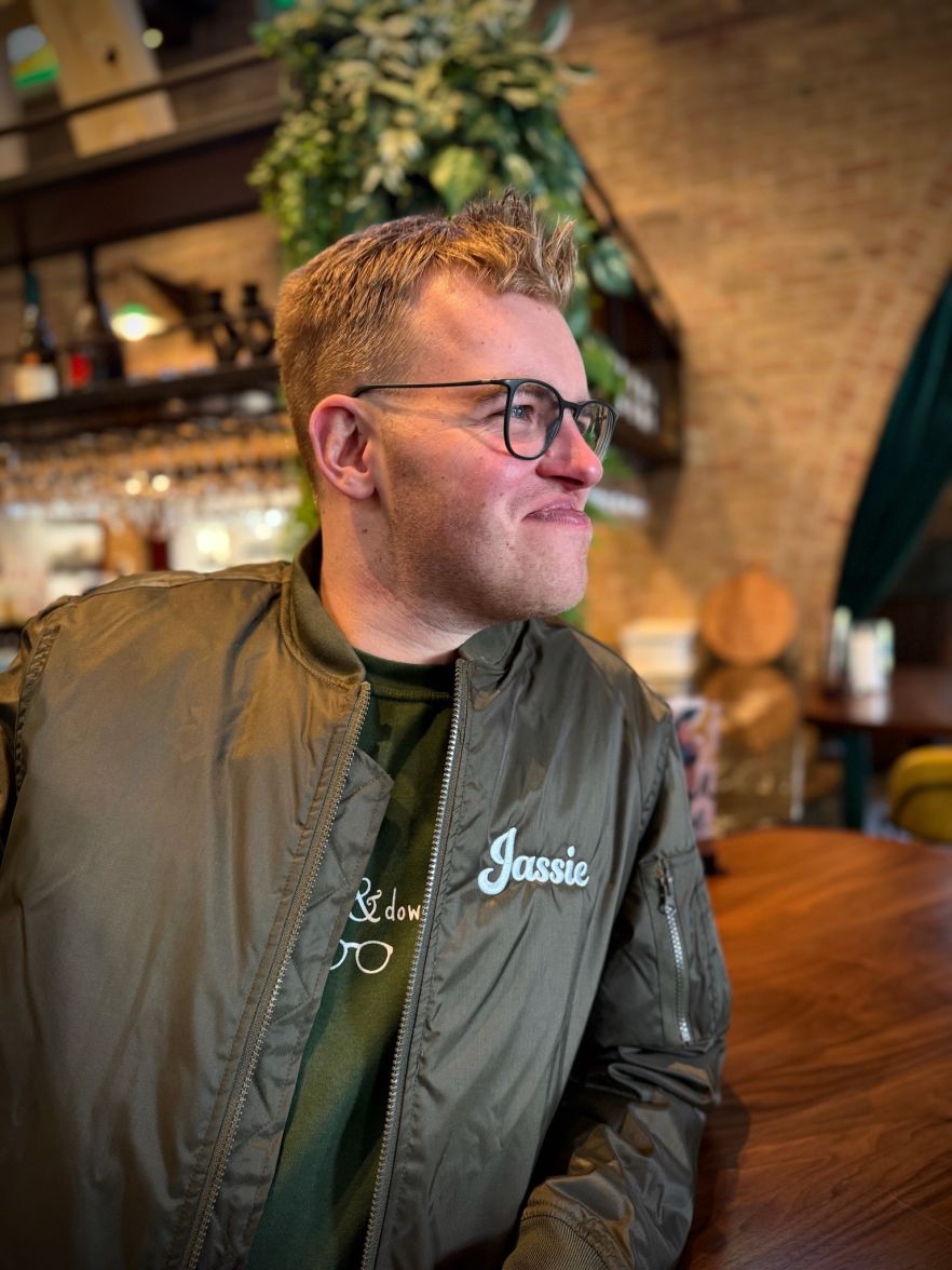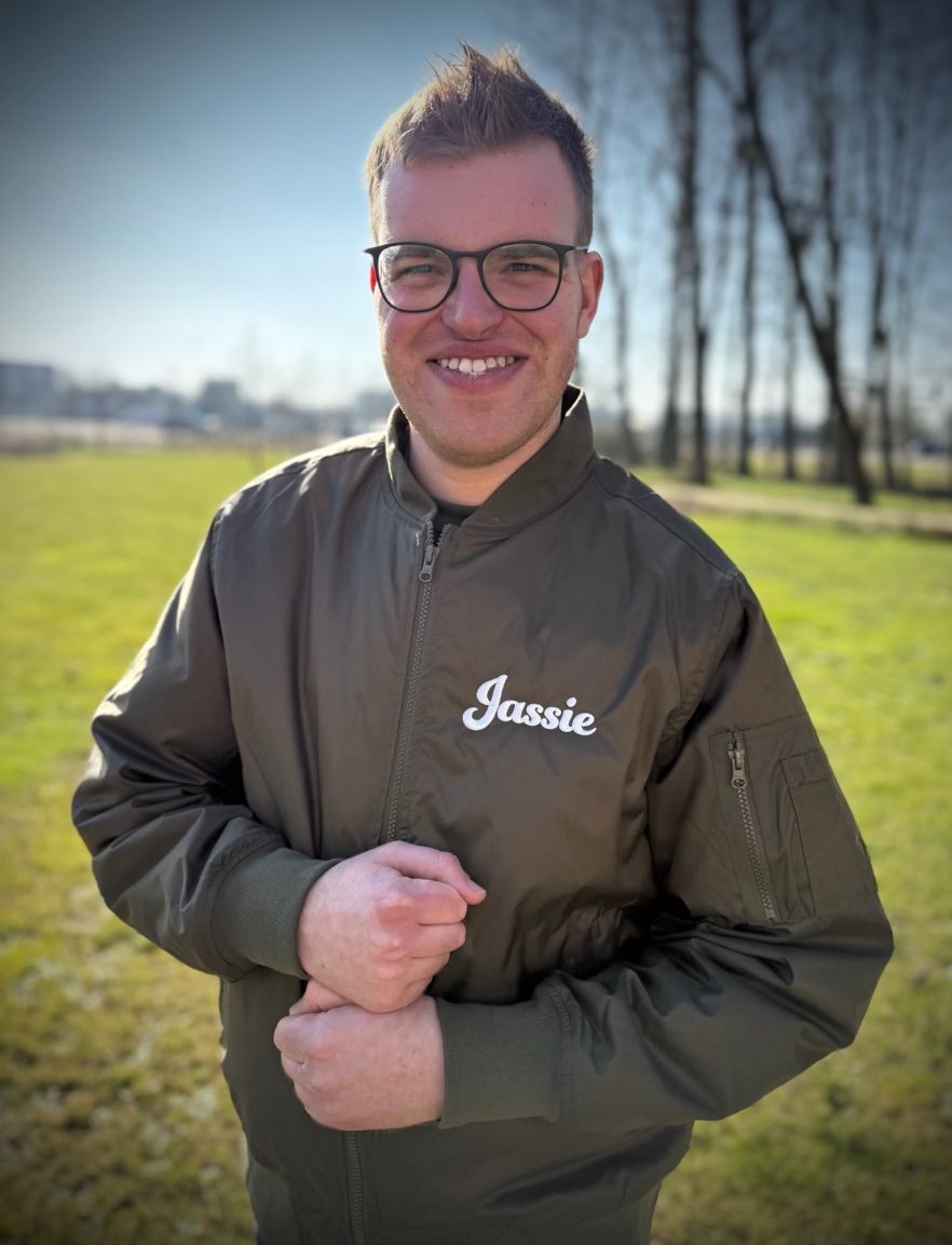 Onze Jasper had zelf een bomberjack die we na zijn overlijden natuurlijk zelf graag wilde dragen. En om duidelijk te maken dat het zijn jas was ontstond het idee om Jassie op zijn Jassie te printen. Familie, vrienden en zelfs mensen die wij helemaal niet kennen zagen dat en wilde ook een Jassie.