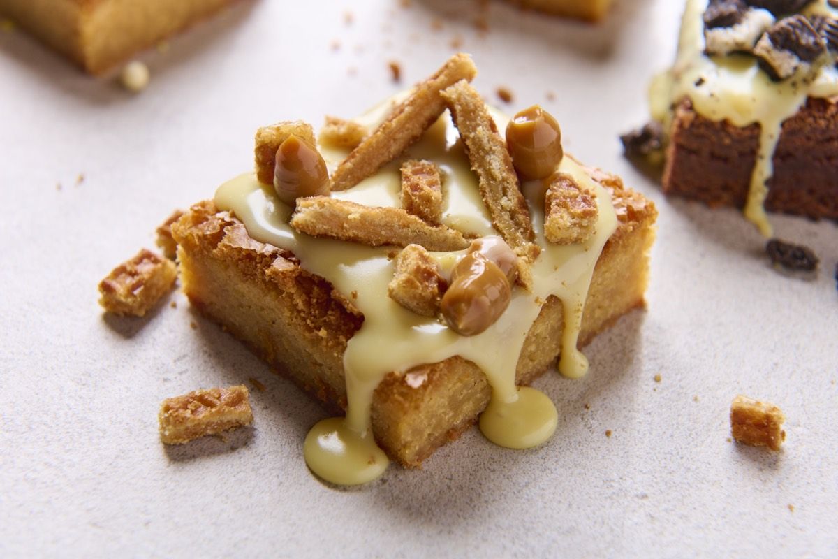 Alle brownies, blondies en gebak kunnen geserveerd worden met slagroom (+ €0,70)